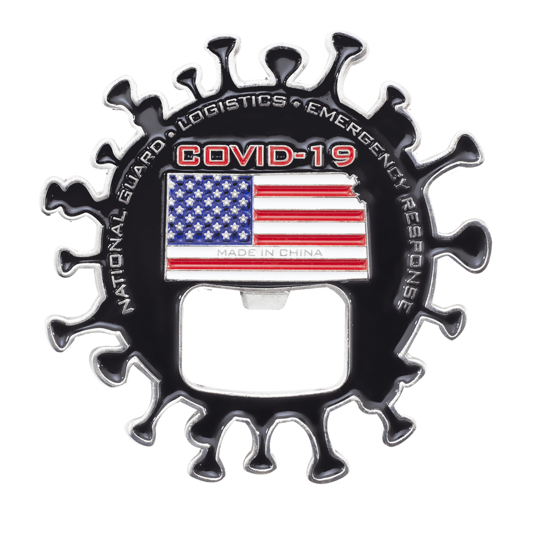 Bottle opener challenge coins like this one perfectly show off a unit's unique sense of humor. They also showcase the fact that not all round challenge coins have to be perfect circles.